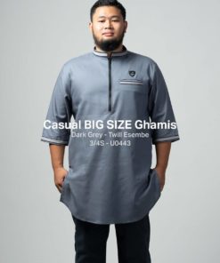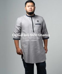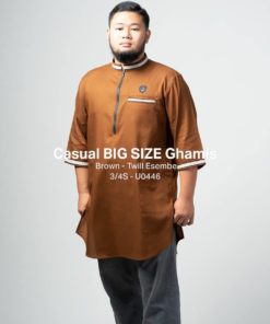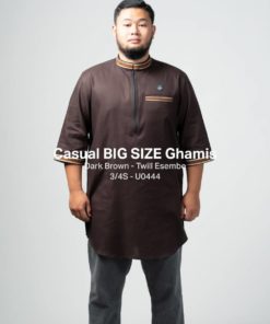 Baju Samase Casual Big Size Ghamis 3/4 Sleeve dengan kode U044, dibuat dari bahan Twill Esembe Ltd warna yang tersedia untuk baju samase ini ada beberapa macan seperti warna Dark Navy, Grey, Dark Grey, Dark Brown, dan Brown.