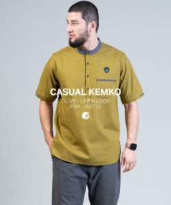 Baju Samase Casual Kemko Short Sleeve (SS) dengan kode A-071, dibuat dari bahan Linen warna yang tersedia untuk baju samase ini ada beberapa macan seperti warna White, Mint, Olive, Cream dan Navy.