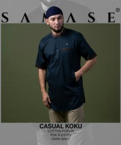 Baju Samase Koku Casual Lengan Pendek dengan kode R-031P, dibuat dari bahan Poplin warna yang tersedia untuk baju samase ini ada beberapa macan seperti warna Navy, White, Black dan Grey.