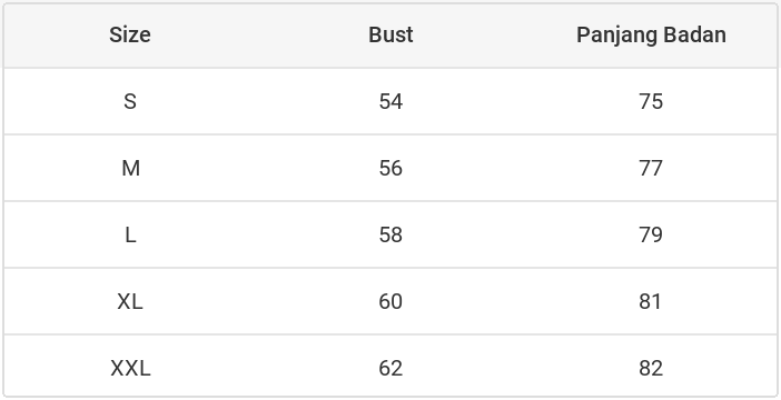Panjang Badan : 75 77 79 81 82