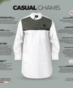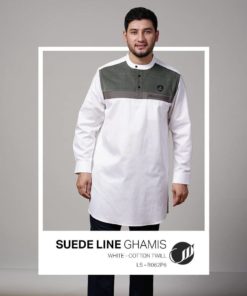 Baju Samase Suede Line Ghamis Long Sleeve (LS) dengan kode R062P, dibuat dari bahan Cotton Twill – Qorduroy – Suede. warna yang tersedia untuk baju samase ini ada beberapa macan seperti warna Navy, Maroon, White, Army, Khaki, and Cream.